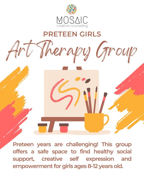 Would you like your preteen girl to build up the supports to withstand peer pressure and build her self confidence? Do you want to see your daughter learn to calm her anxiety and have the tools to handle the upcoming adolescent years? Our Preteen Girl’s Art Therapy Group offers a space for girls to build strong relationships with a healthy influence. This group of young girls will learn to express themselves, build confidence together, and become resilient for the challenges they face. Through fun art making and creativity they will learn to identify their emotions, practice self regulation, and support their fellow peers. You’ll see your daughter develop positive thinking, higher self esteem, and healthy habits. Spots are limited, fill out a referral form or schedule a consultation call to see if this is the right fit for your preteen girl today!